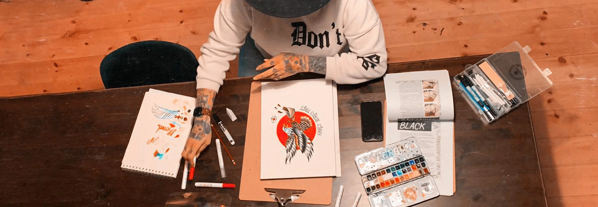 Illustrationen mit Haltung – von expressivem American Traditional Tattoodesigns bis zu frechen Character Designs. Jedes Motiv erzählt eine Geschichte, bold im Ausdruck, mit Herz im Detail.